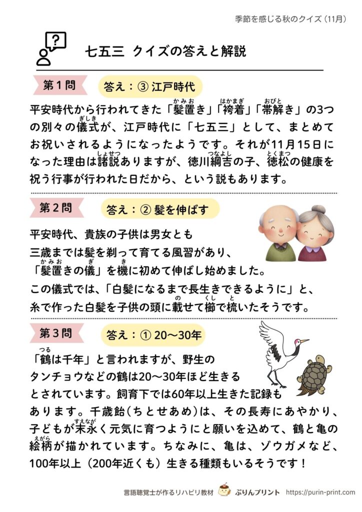 秋のクイズ(11月)七五三の雑学|クイズプリント|無料