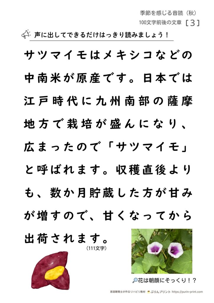 9月前半にサツマイモのプリントをダウンロードしてくださった方へ