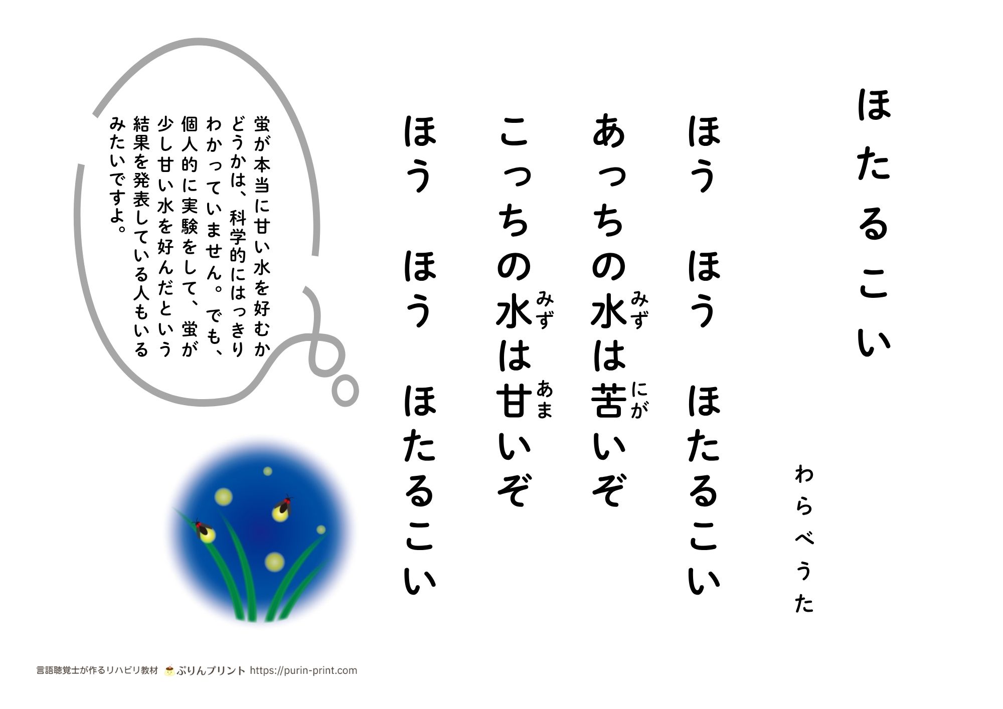 季節を感じる秋の音読プリント。秋と言えば思い出す風物詩に関する50~100字程度の文章です。※大きな文字で見やすいプリントです。ルビ付きとルビ無しを選べます。ルビは、大きく見やすくしています。